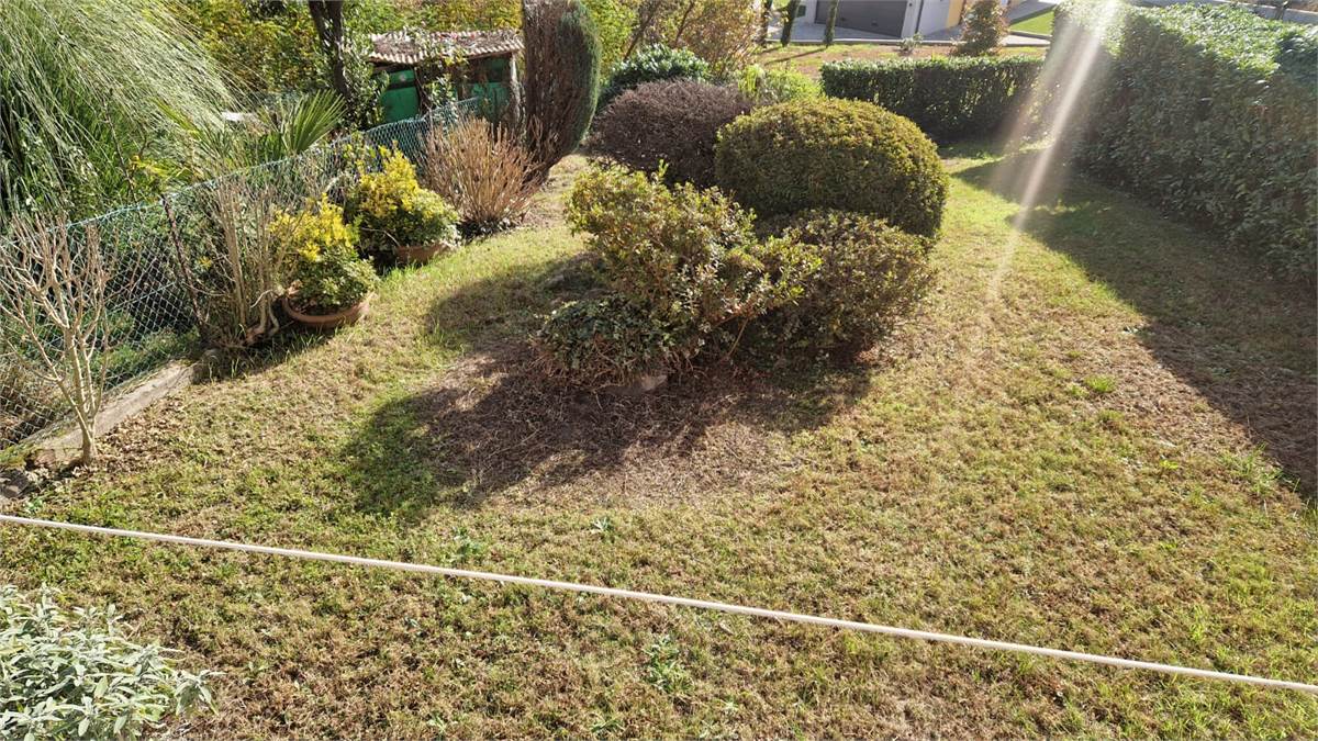 Una luminosa zona giorno con cucina semiabitabile e soggiorno ci accolgono e ci guidano prima al terrazzino e poi al giardino, vera chicca della casa, due comode camere da letto (la matrimoniale con balcone) e un bagno.